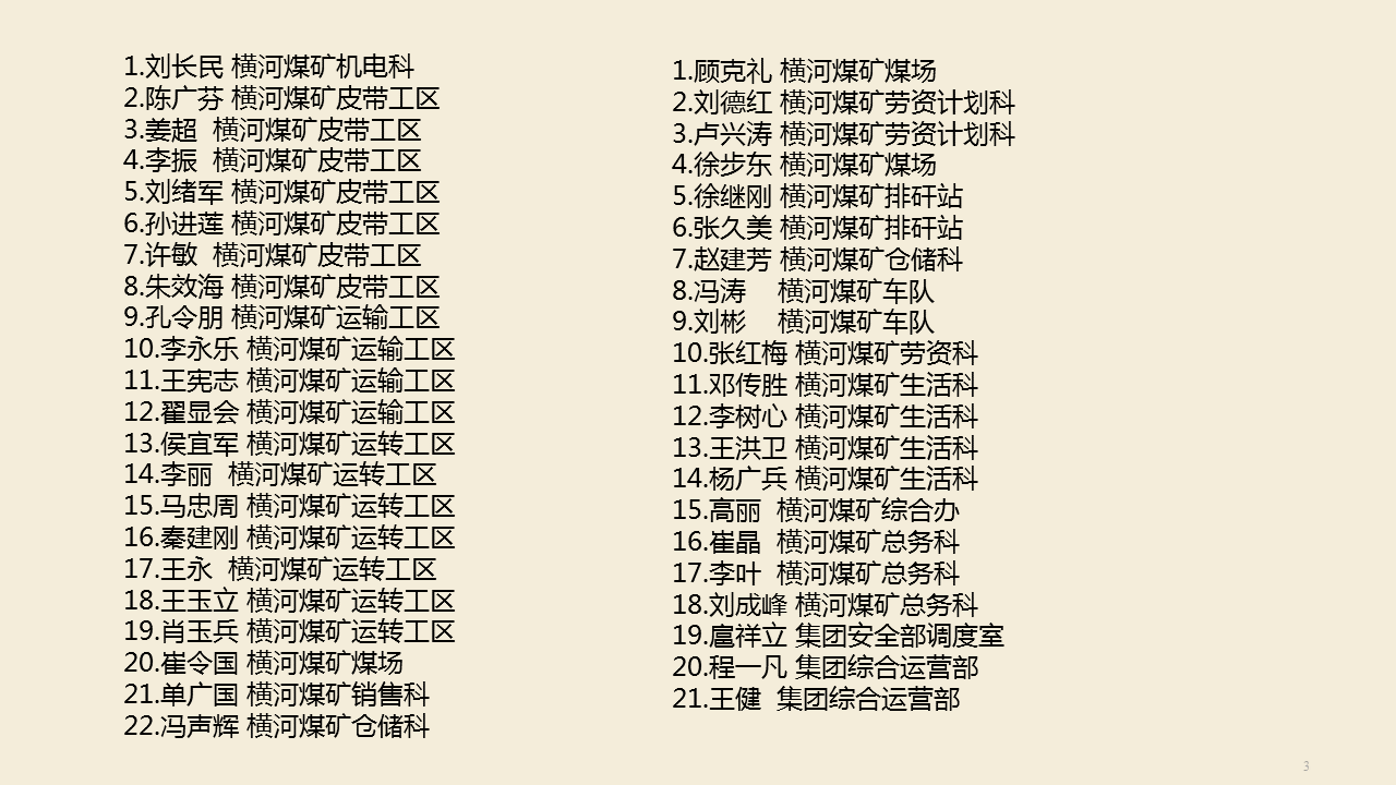 為展示集團(tuán)員工積極向上、愛崗敬業(yè)、無私奉獻(xiàn)的優(yōu)秀品質(zhì)和良好精神風(fēng)貌,加強(qiáng)員工隊(duì)伍建設(shè),激勵擔(dān)當(dāng)作為,凝聚干事力量,按照集團(tuán)黨委安排,在集團(tuán)開展“愛崗敬業(yè)最美宏河人”推薦評選及學(xué)習(xí)宣傳活動,自10月中旬文件下發(fā)之日開始,至截止日共收到推薦材料123份。集團(tuán)網(wǎng)管宣傳科重點(diǎn)根據(jù)典型性、真實(shí)性及材料充實(shí)性擇優(yōu)陸續(xù)推出各單位、部門推選的愛崗敬業(yè)最美宏河人事跡材料37份。 在發(fā)布的37份事跡材料中以他們?yōu)榇淼钠胀▎T工,涵蓋集團(tuán)發(fā)展業(yè)務(wù)中涉獵的不同行業(yè)、不同崗位,雖工作性質(zhì)不同,但都以在平凡崗位上默默工作,無私奉獻(xiàn),努力向上,持之以恒體現(xiàn)自己的價(jià)值為主。期間,微信公眾后臺收到很多很多留言,多是為大家自己心目中愛崗敬業(yè)的模范加油點(diǎn)贊! 從泗河之濱到孟子湖畔,從橫河煤礦到宏河控股,逢山開道,逾河架橋,知難而進(jìn),召之能來,來之能戰(zhàn),戰(zhàn)之能勝!在集團(tuán)公司發(fā)展過程中,有一大批員工隨工作需要遠(yuǎn)赴外地,有只要宏河發(fā)展建設(shè)有需要:“宏河在哪,家在哪”的他,有寧可聽些罵聲,也不能讓安全沒保障的安監(jiān)員,有十幾年如一日堅(jiān)守一個(gè)崗位的她,有傳承互助的好師傅,有忠于職守的有勤奮好學(xué)的他,有以青年之名扛時(shí)代擔(dān)當(dāng)踏實(shí)努力德才兼?zhèn)涞那嗄陚?,有妙手回春維修大拿,有任重道遠(yuǎn)巷修人,也有退伍不褪色平凡崗位展風(fēng)采的采煤一線工作者等等等等。為每一個(gè)努力加油的自己點(diǎn)贊,為努力向上的宏河人點(diǎn)贊! 因活動開展日期及篇幅有限沒有將所有事跡一一展示,文末將各單位、部室上報(bào)所有推薦材料人員名單附上。在此感恩感謝!